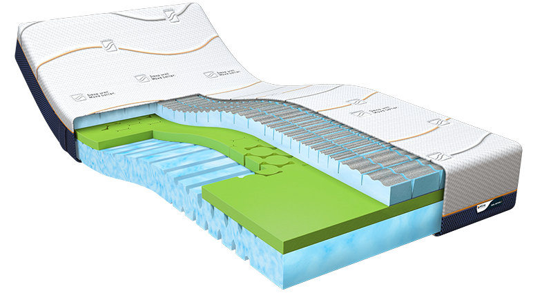 Koudschuim matras met meerdere lagen traagschuim Naast de koudschuim basislaag, de toplaag van traagschuim en de gepatenteerde Dual Action tijk is de Cool Motion 3 voorzien van een extra comfortlaag en een unieke afwerking op de toplaag. Deze combinatie g