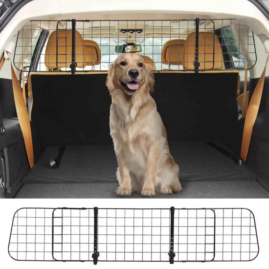 Met dit stevige universele hondenrek kun je je huisdier veilig in de auto vervoeren. Vanwege het grote aantal automerken met verschillende afmetingen bieden wij een universeel bagagerek. Het autorek kan traploos in de breedte worden aangepast en kan daarom individueel aan het betreffende voertuig worden aangepast. Het robuuste rooster is gemaakt van metalen buizen en heeft geen scherpe of uitstekende delen. Vanaf nu kun je je huisdier of bagage veilig in je kofferbak vervoeren.
