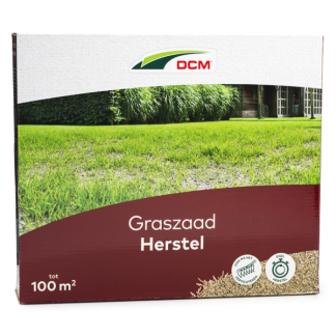 Graszaad voor herstel - Herstel kale plekken en zaai door na het verticuteren met DCM Graszaad Herstel. Het graszaad kiemt snel waardoor onkruiden minder kans maken, ook bij lagere temperaturen. Garandeer een gelijkmatige verdeling met de verpakking die functioneert als strooidoos.Snelkiemend graszaad zaaienom een slecht gazon te herstellenDCM gebruikt graszaad dat is gecontroleerd op topkwaliteit. Het graszaad is erg betrouwbaar en geschikt voor elke grondsoort. Het graszaad ontkiemt zelfs bij lagere temperaturen. Onkruid maakt weinig kans, omdat de grasmat snel dichtgroeit. Herstel graszaad zit verpakt in een handige strooidoos, wat een gelijkmatige verdeling garandeert. Met een doos van 1.5 kg kun je tot wel 100 m² gazon inzaaien. Gebruik ongeveer 200 tot 300 gram per 10 m² voor herstel of gebruik ongeveer 100 tot 200 gram per 10 m² om door te zaaien. De ideale toepassingsperiode is van maart tot juni en van september tot november.Eigenschappen: Snelgroeiend graszaad Geschikt voor alle bodemtypes Snelkiemend graszaad Te gebruiken bij lagere temperaturen Onkruid maakt geen kans Geschikt voor gazons tot 100 m² Handige strooidoos Gewicht: 1.5kg