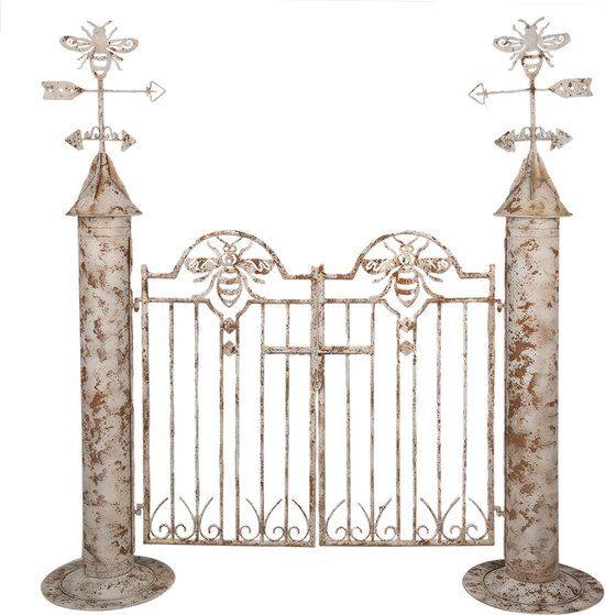 Clayre & Eef Tuinpoort - 164x40x172 cm - Wit - IJzer - Tuindecoratie - Tuinpoorten