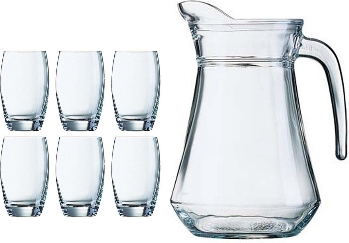 ARCOROC Salto Waterglazen Set 6x 350ml + Schenkkan 1.3L - Transparant Glas - Tumblers