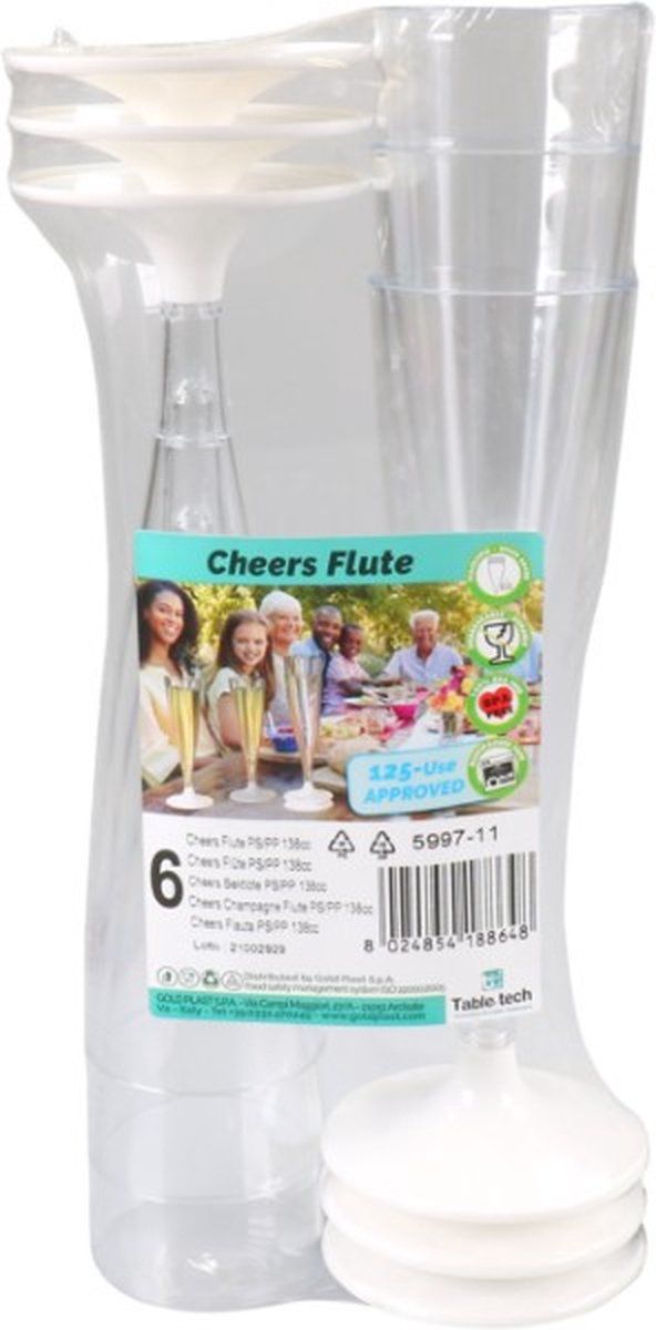 GOLD PLAST SPA CHAMPAGNE GLAS ONBREEKBAAR OP WITTE VOET 138ML (12 STUKS)