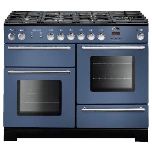 Vrijstaand fornuis gas/elektro Infusion 110 met 6 gasbranders waarvan 2 wokbrander, Teppanyaki plaat, gietijzeren pannedragers, ge´ntegreerde vonkonsteking, thermische beveiliging, links 1 hetelucht oven met inhoud 73 liter, rechts 1 hetelucht oven met i