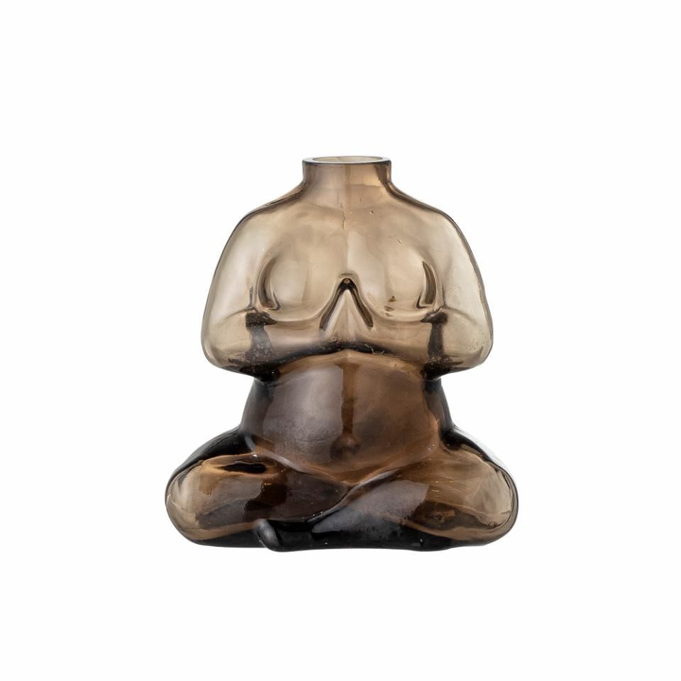 De vorm van deze vaas zet het vrouwelijk lichaam centraal in dit ontwerp. De vaas is gemaakt van donkerbruin glas in verschillende tinten. Geen zeep gebruiken bij het schoonmaken van de vaas.