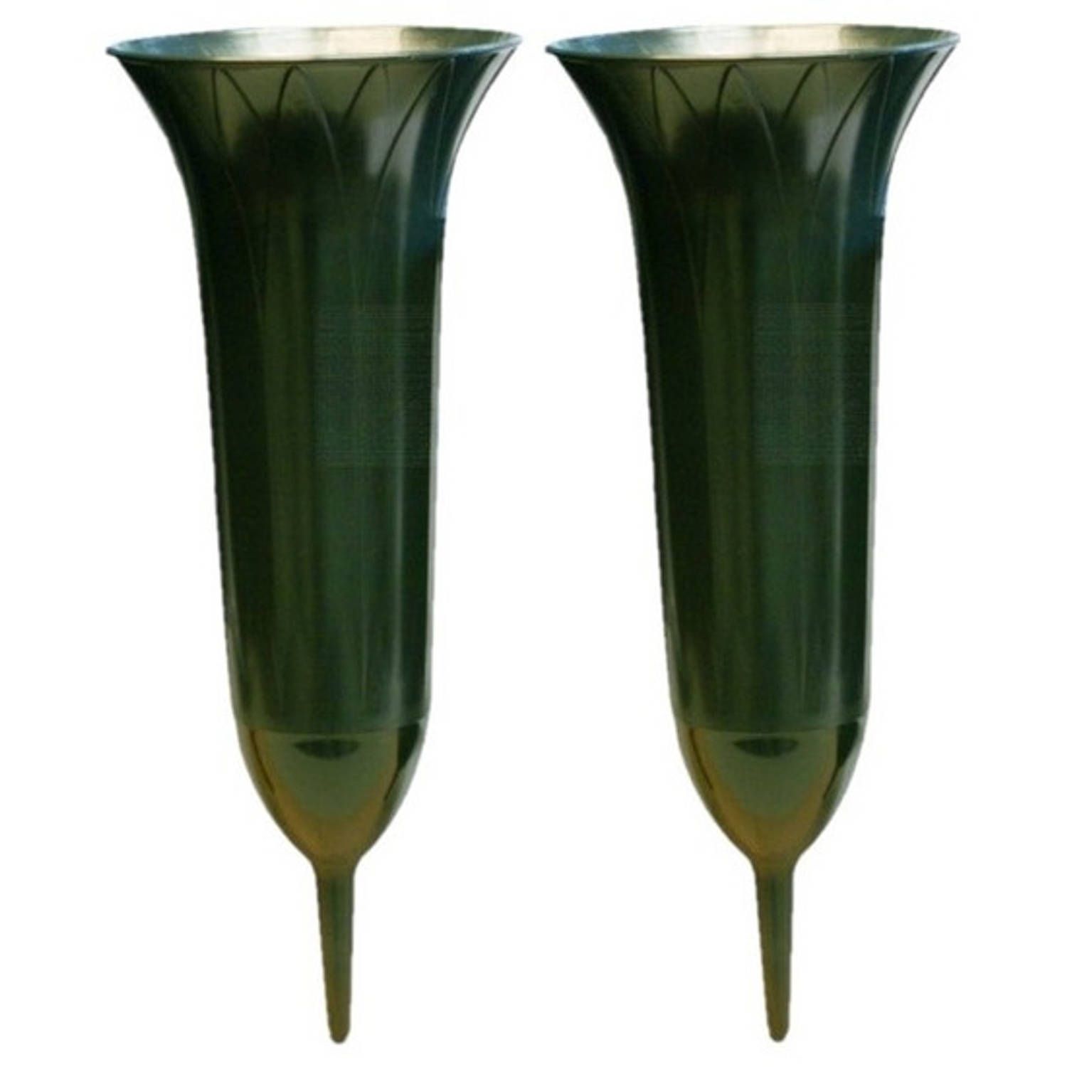 2x Groene kunststof grafvazen 31 cm - Grafvazen grafkaarsen - Vazen