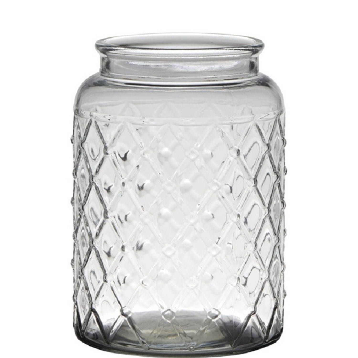 Transparante glazen bloemenvaas met ruitjesprint - 23 cm hoog - 16 cm diameter - Vazen