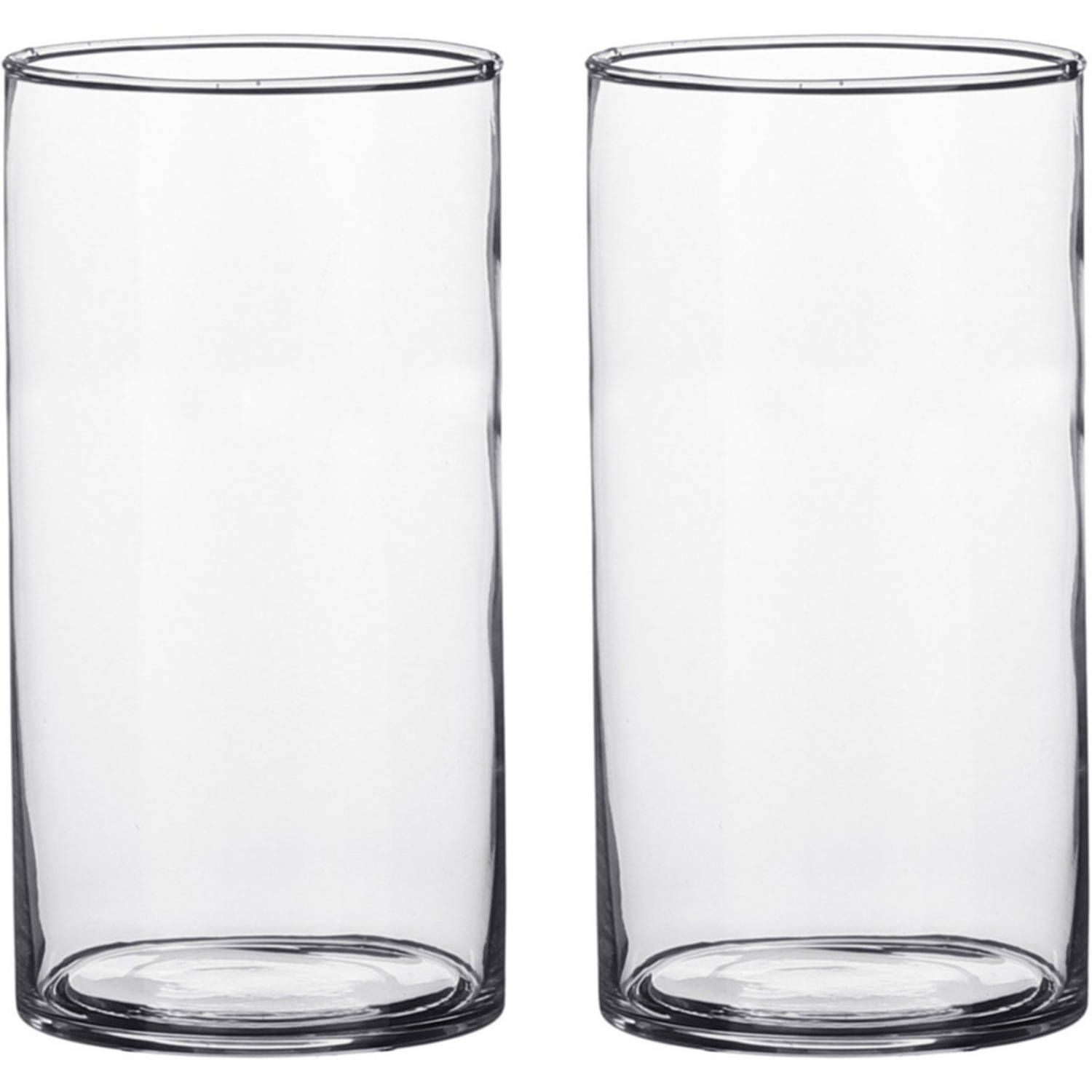 Mica Decorations Set van 2x cilinder vaas/vazen glas 9 x 15 cm - Transparant - Vazen