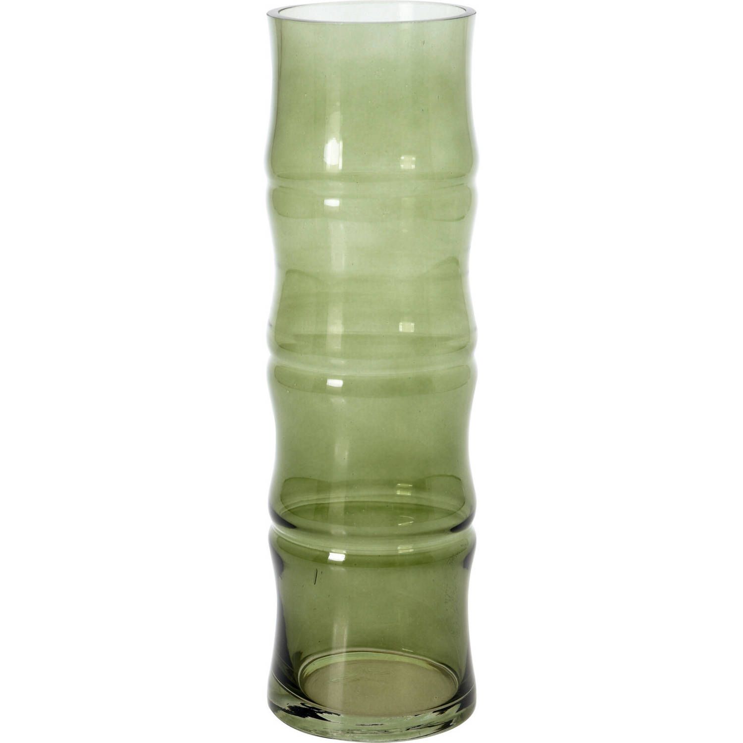Bellatio Flowers & Plants Lichtgroene Glazen Bamboe Vaas - 9 x 31 cm