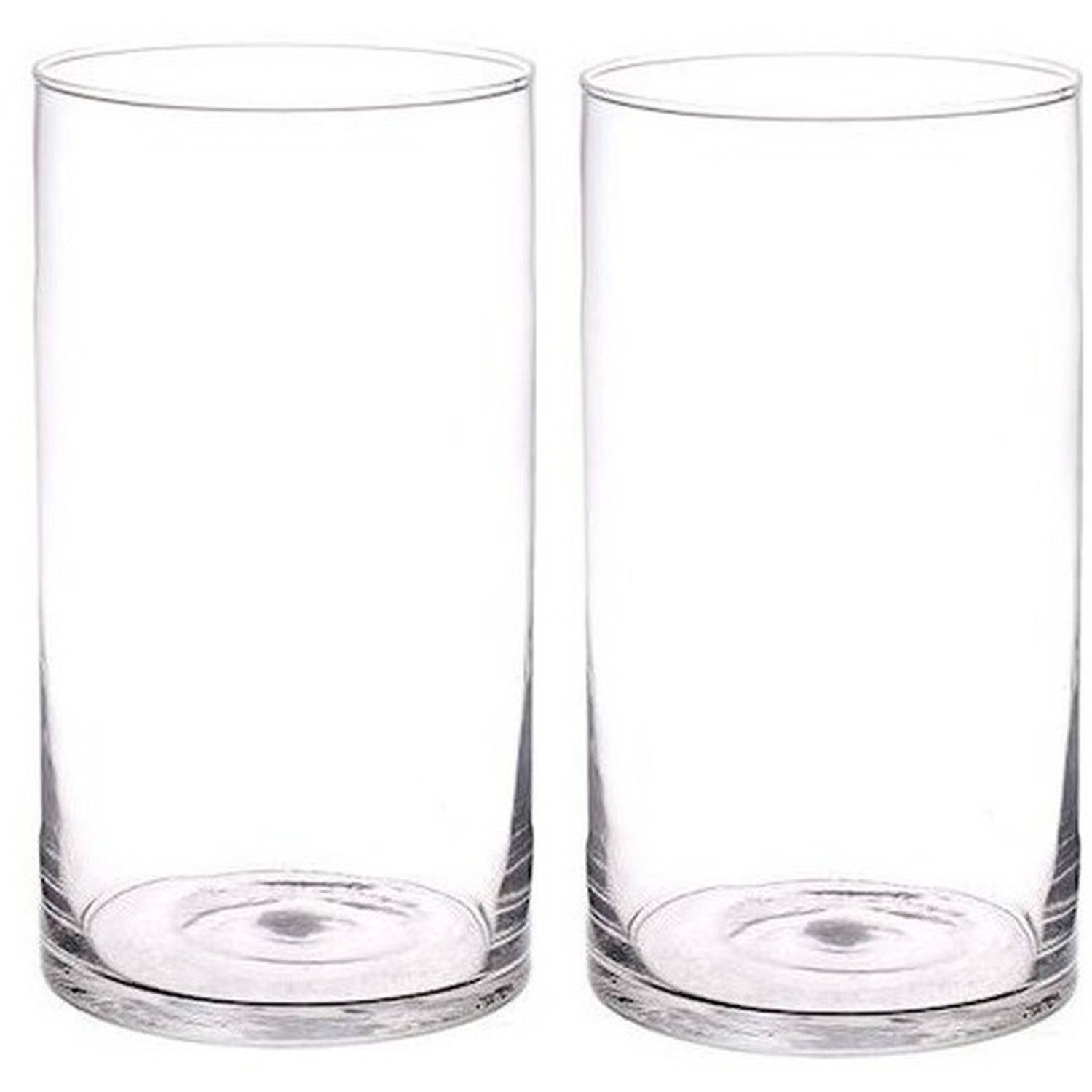 Bellatio Flowers & Plants 2x Rechte cilinder vazen glas 30 cm - Transparant - Vazen