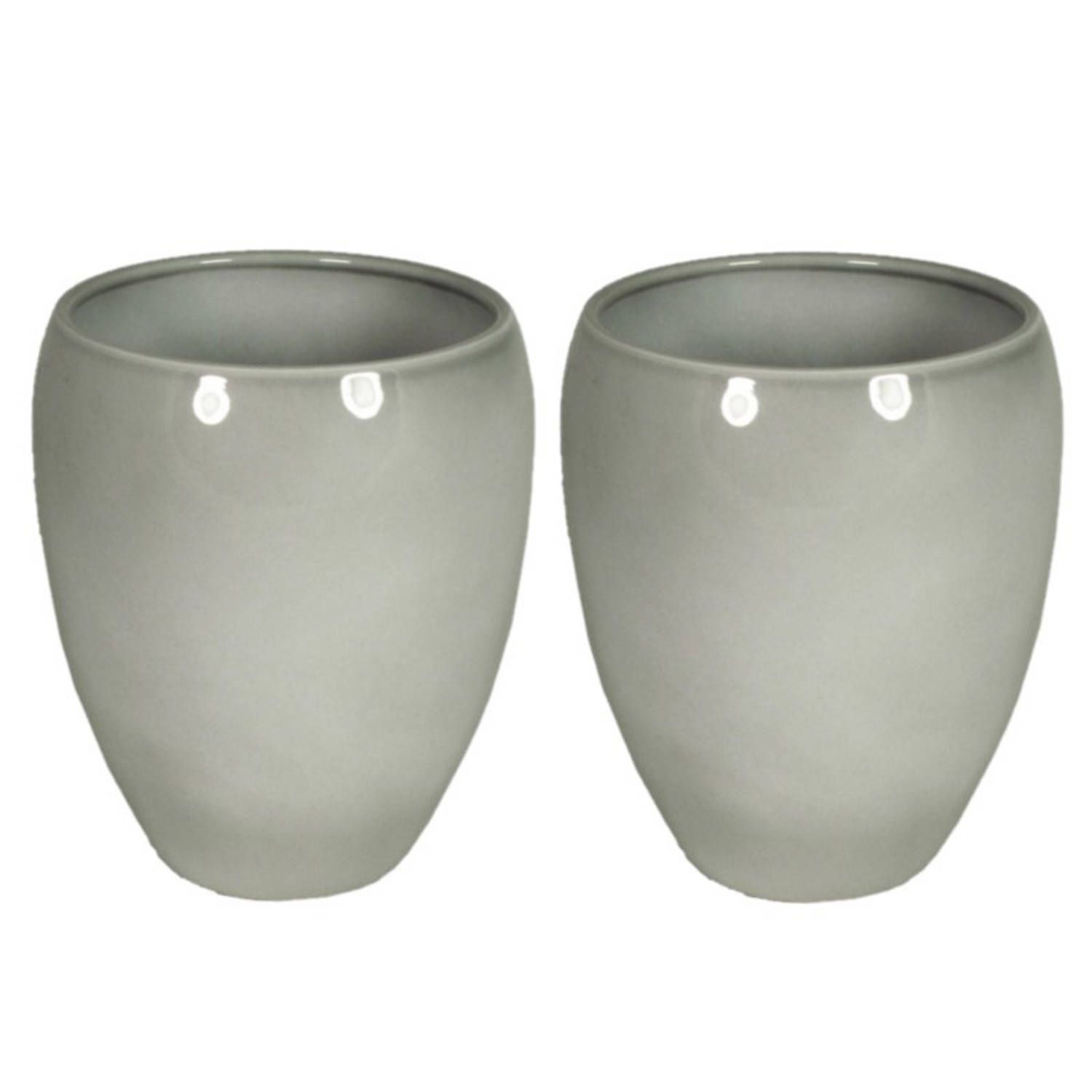 Floran - Bloemen vaas - Glanzend grijs - Keramiek - D25 x H28 cm - 2 stuks - Vazen