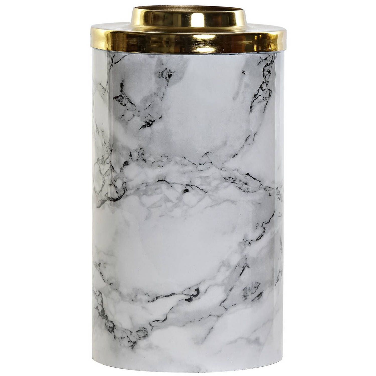 Items Bloemenvaasje aluminium 10 x 19 cm - marmer look - wit