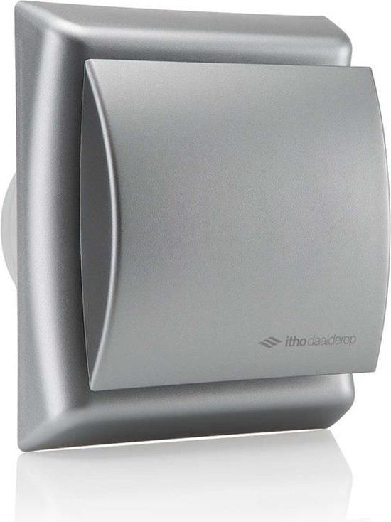 Deze mat zilveren badkamer- en toilet ventilator van Itho Daalderop is gesc