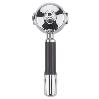 Fraai zwaar uitgevoerde filterdrager voor ESE servings met rechte handgreep voor ECM espressomachines.
