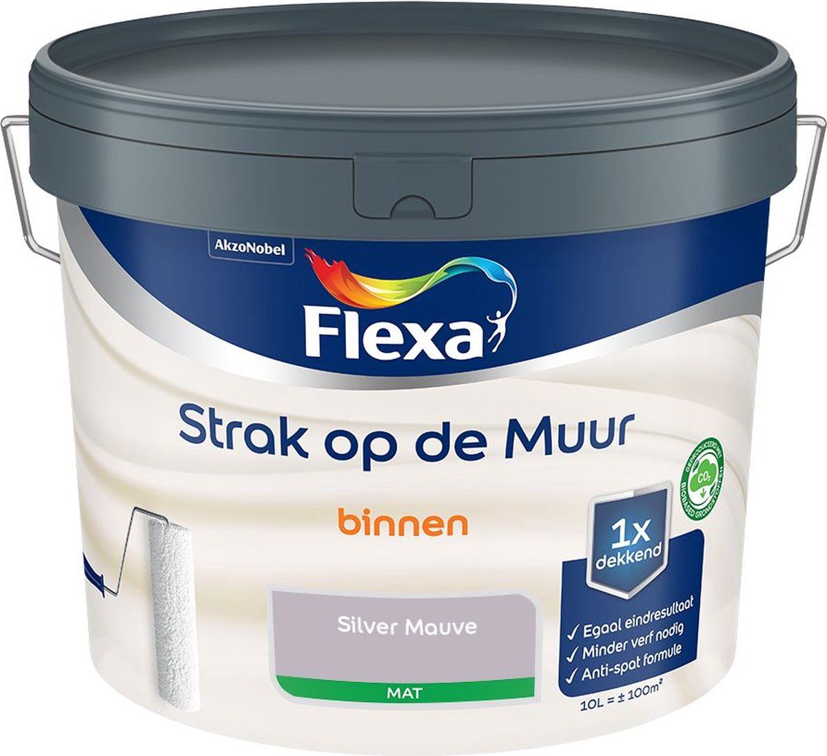 FLEXA Strak op de Muur - Binnen muurverf - Mat - Silver Mauve - 10 liter - Verf