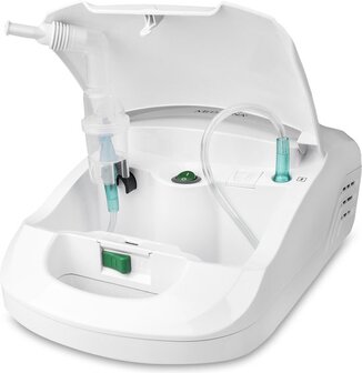 Verneveling met luchtcompressietechniek\n\n- Inhalatie via masker, mond- of neus-adapter - bij uitstek ook geschikt voor kinderen\n- Extra lange slang - 2 m\n- Verneveling met luchtcompressietechniek\n- Gecertificeerd medisch product\n- Voor doelgerichte behandeling van aandoeningen aan de bovenste en onderste luchtwegen (astma, verkoudheid)\n- Met geïntegreerde accessoires compartiment\n- Zeer effectief dankzij micro?jne verneveling\n- Bijzonder effectief door hoog aandeel aërosol inhalatie