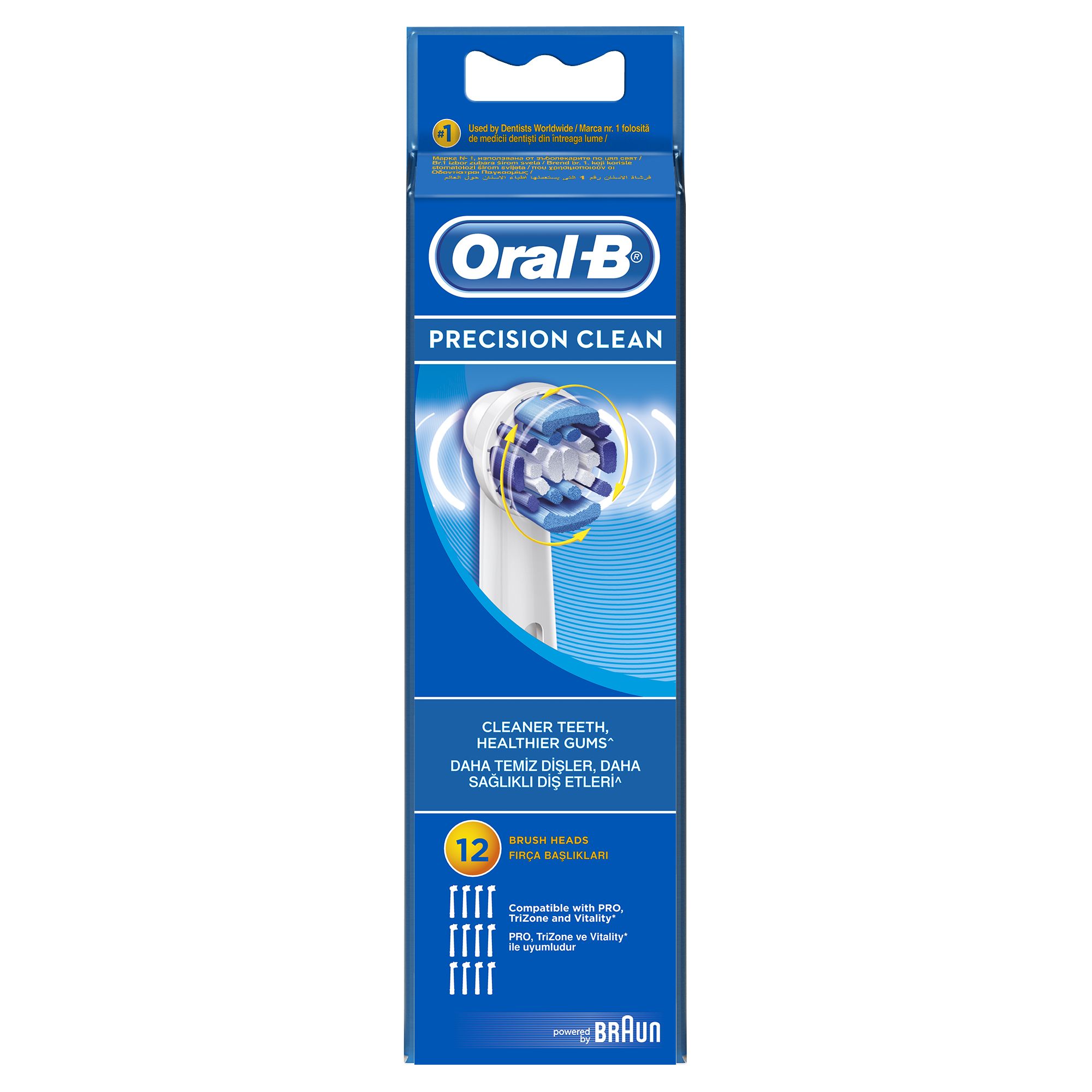 De Oral-B Precision Clean borstelharen reiken tot diep tussen de tanden en kunnen een grotere oppervlakte aan zodat je hele mond schoner is dan bij gebruik van een gewone manuele tandenborstel, en ze verwijderen tot 100% meer tandplak voor een uitstekende poetsbeurt.