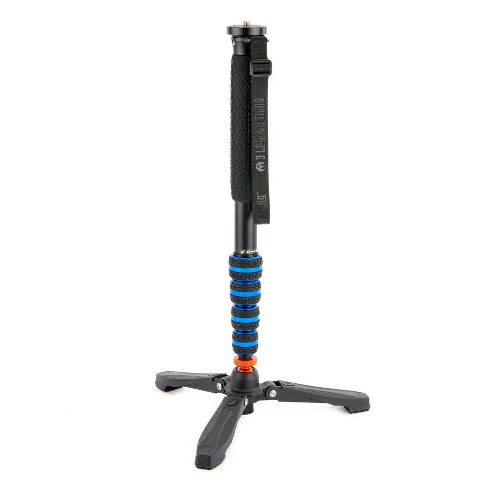 3 Legged Thing Punks Taylor 2.0 Magnesium Alloy Monopod with Docz foot stabiliser, blue De 3 Legged Thing Punks Taylor 2.0 Magnesium Alloy Monopod with Docz foot stabiliser is een zeer capabele en makkelijk mee te nemen monopod met 5 secties. Deze monopod is handig voor zowel sport- als natuurfotografie en videografie en kan worden gebruikt met of zonder de Docz voetstabilisator. Daarnaast is het zelfs nog mogelijk om hem als boorarm te gebruiken. Dankzij het compacte en reisvriendelijke formaat kan de Taylor 2.0 gemakkelijk worden meegenomen in handbagage en is hij geschikt voor gebruik op boten, in de trein en in de auto.  De Taylor 2.0 valt op door zijn ongelooflijke veelzijdigheid, met dubbele schroefdraad aan beide uiteinden. Aan de bovenkant zorgt een verende combischroefdraad ervoor dat de 3/8"-16 schroefdraad onder de 1/4"-20 schroefdraad kan worden geschoven. Aan de onderkant zit een 3/8"-16 schroefdraad met een 1/4"-20 adapterbus, waardoor compatibiliteit ontstaat met verschillende statieven en de Docz stabilisator. De Docz biedt extra stabiliteit aan de Taylor 2.0 monopod en kan ook functioneren als ministatief door een camera direct aan de 1/4"-20 schroefbevestiging te bevestigen. Uitgerust met een 1/4"-20 schroefbevestiging en een meegeleverde 3/8"-16 adapter, kan de Docz voetstabilisator worden gebruikt met een breed scala aan monopods en statieven met afneembare monopod poten. Kenmerken van de 3 Legged Thing Punks Taylor 2.0 Magnesium Alloy Monopod with Docz foot stabiliser, blue * Ideaal om mee te nemen op reis * Rubberen grip voor comfortabel gebruik in alle weersomstandigheden * 1/4"-20 en 3/8"-16 veerbelaste hoofdbevestiging * Kleur: blauw * Materiaal: magnesium * Maximaal draagvermogen: 30 kilogram * Minimale hoogte: 49.1 centimeter * Maximale hoogte: 163 centimeter * Transportlengte: 49.1 centimeter * Gewicht: 1200 gram  Inhoud van de verpakking * 3 Legged Thing Punks Taylor 2.0 Magnesium Alloy Monopod, blue * 3 Legged Thing Docz foot stabiliser * Gereedschap