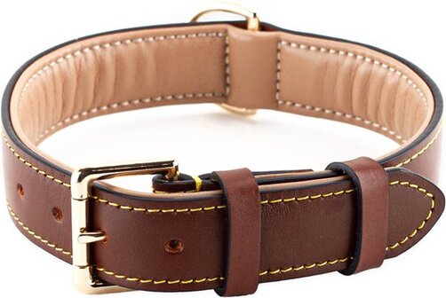 Brute Strength Luxe Leren Honden Halsband - Bruin - XL - Vlooienhalsbanden