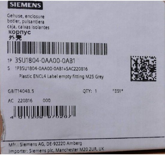 Bekijk productSiemens 3SU1804-0AA00-0AB1 Lege behuizing 4 inbouwplaatsen (l x b x h) 194 x 85 x 64 mm Zonder markering Grijs 1 stuk(s - Voedingsbehuizingen