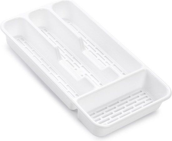 PLASTICFORTE Bestekbak - 4-vaks - Wit - 33 x 17.5 x 4.3 cm - Kunststof - Besteksets