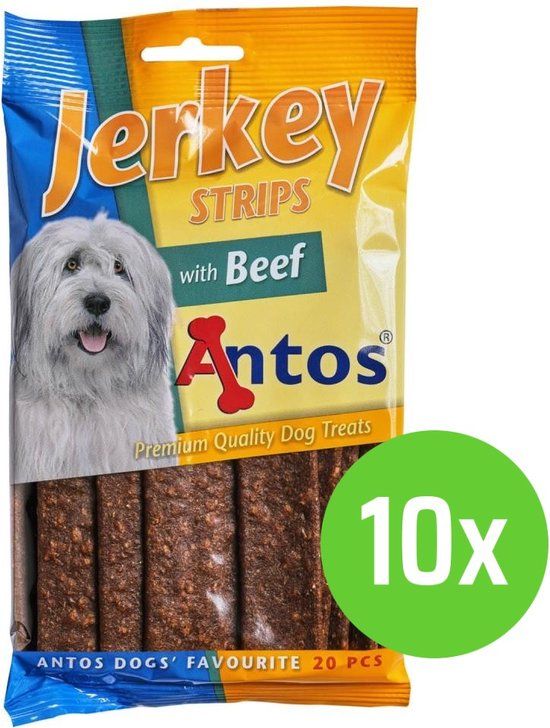 Antos Jerkey Strips Rund - Hondensnack - 20 Stuks - 10 Verpakkingen - Voer voor kleine dieren