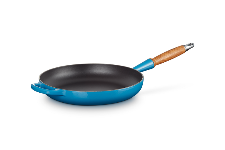 Bekijk productLe Creuset Braadpan - 28 cm - Gietijzer - Zwart/Blauw/Hout - Voorraadkasten