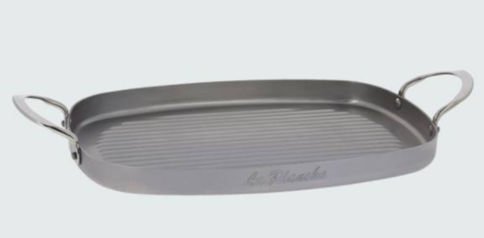Mineral B Element utensil in heavy quality iron coated with beeswax: protective finish against oxidation.\nRiveted handles.\nIt is the perfect utensil as an extra grill pan. This “Plancha” pan is used to grill meat without fat content. Ridges are useful to mark meat but overall to reduce sticking surface.\nIt is also perfect to cook scallop flesh, shrimps, fish, vegetables...\nAll heat sources including induction and hotcoals.\n\nDo not use detergents or put in the dishwasher.