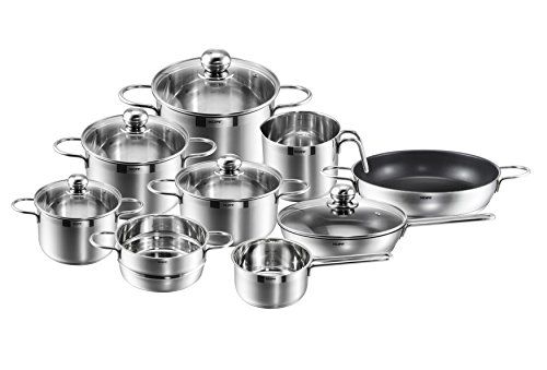 Kopf Potenset Josie van roestvrij staal - inductie potten met schenkrand, literschaal en glazen deksel - 14-delig - Voorraadkasten