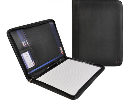 Desq Conferentiemap - A4 - Zwart - Kunstleer - Ritssluiting - Vouwblaadjes