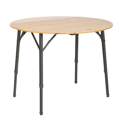 Een ronde bamboe tafel met stijlvolle afwerking uit de Urban Outdoor collectie. Deze watervaste tafel is eenvoudig uit te klappen. Daarna weer eenvoudig en compact inklapbaar en hierdoor ideaal voor onderweg, in het park, op het balkon, in de tuin of gewoon binnen. Deze tafel is voorzien van een rond bamboe tafelblad en een lichtgewicht aluminium frame. De poten zijn in 3 verschillende hoogtes verstelbaar (45/52/65 cm).