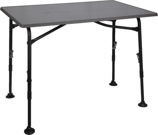 De afmetingen van de ingeklapte campingtafel zijn 100 x 70 x 7 cm (lxbxh). Dankzij de opvouwbare aluminium poten is hij ideaal voor gebruik op de camping of elders in de buitenlucht. Deze kampeertafel heeft een robuust zwart frame dat u moet losdraaien voor u hem inklapt. Door de tafelpoten met brede voetjes aan de onderkant staat uw campingtafel stevig en stabiel op iedere ondergrond. Dit product is plat opvouwbaar en is met een gewicht van 6,9 kg zeer licht, waardoor hij gemakkelijk mee te nemen is naar iedere (vakantie)bestemming.