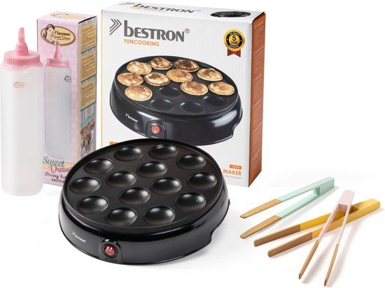 Bestron Poffertjesmaker - Retro Design - Cadeau Set - Zwart/Multikleurig