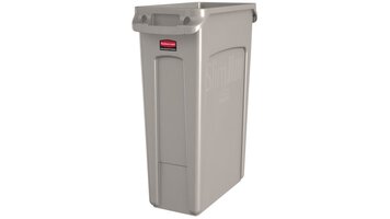The Rubbermaid Commercial Vented Slim Jim® Container is crafted to make waste management compliance easier and reduce strain on workers. Constructed of high quality, commercial-grade materials, these containers feature 4 venting channels that make removing garbage bags up to 80% easier than traditional straight wall receptacles.\n\nVENTING CHANNELS\nMake removing liners 80% easier, improving productivity and reducing the risk of worker injury.\n\nBAG CINCHES\nSecure liners around the rim of the container and allow for quick, knot-free liner changes.\n\nBASE AND RIM HANDLES\nImprove grip and control while lifting and emptying full containers.\n\nRIM WITH RIB-STRENGTHENED DESIGN\nMaintains structural integrity to resist crushing.\n\nCOMMERCIAL-GRADE CONSTRUCTION\nWith high-quality resin material.\n\nROBUST RIM HANDLES\nResists tearing and damage during lifting and moving.\n\nSTAINLESS STEEL DOLLIES\nEasy to clean. Won't rust or chip in commercial environments.