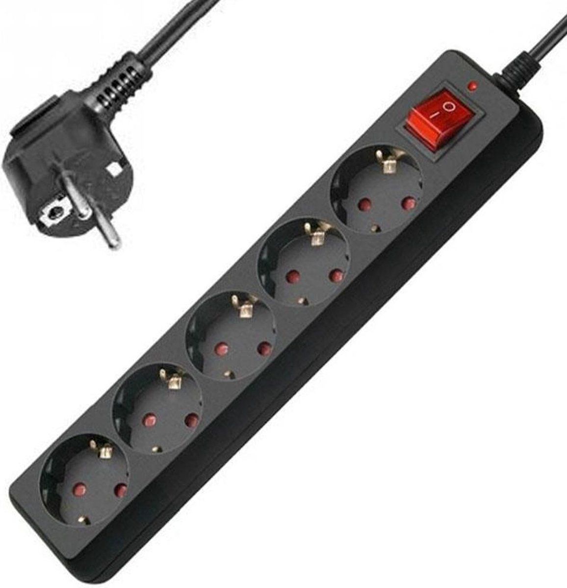 Allteq Stekkerdoos met schakelaar - 5-voudig - 15 meter - Zwart - Wandcontacten