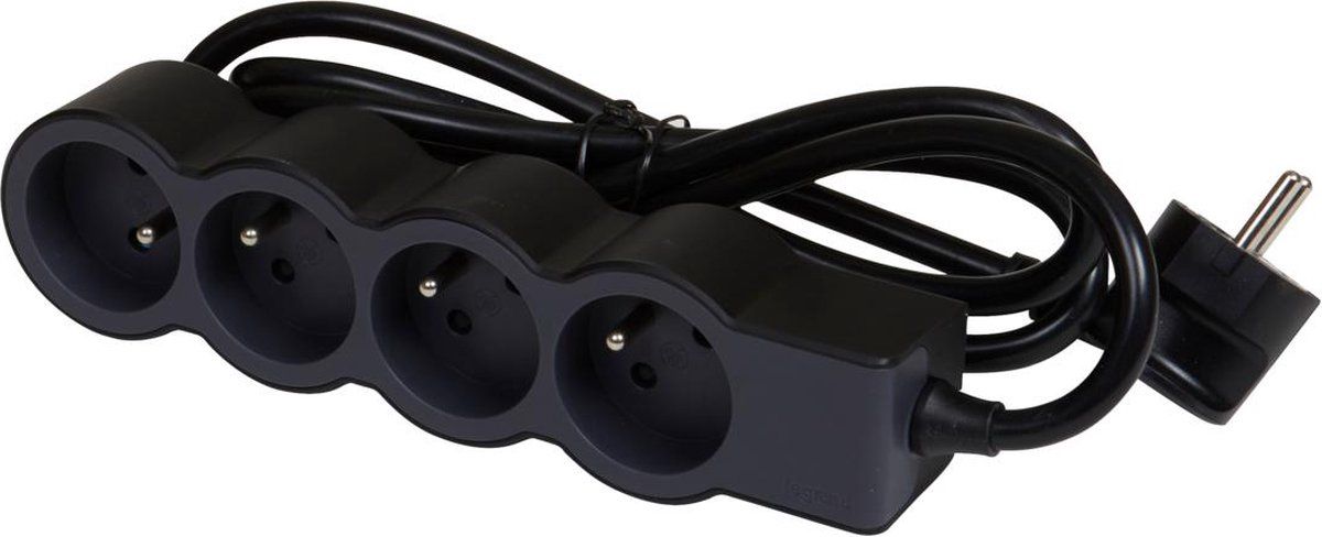 LEGRAND - 4V Stopcontact +3M Zwart - Zwart - 3414971944046 - Wandcontacten