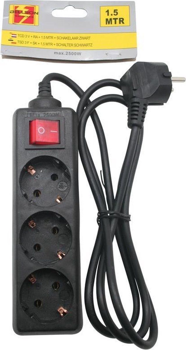 Ben Tools 3x Stekkerdoos 3-voudig zwart - 1,5 meter - Met randaarde en schakelaar - Wandcontacten