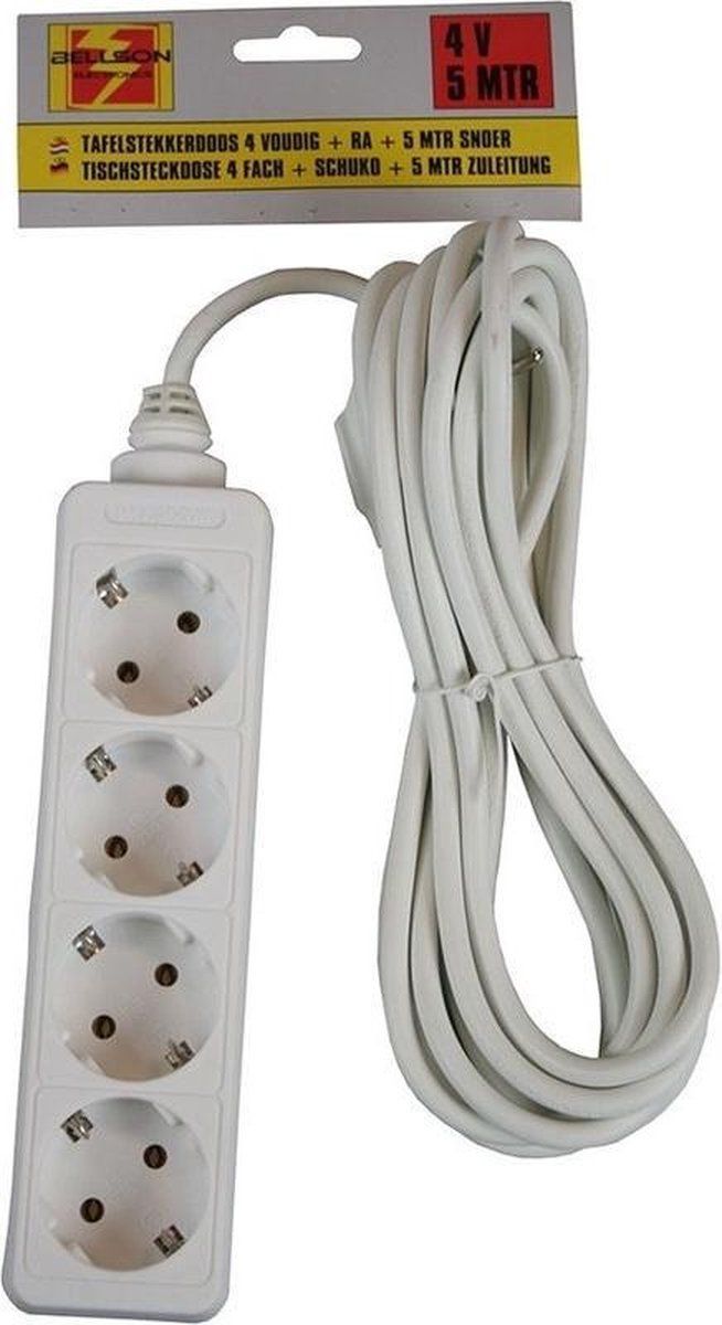 Ben Tools 2x Stekkerdoos 4-voudig wit - 5 meter - Met randaarde - Wandcontacten