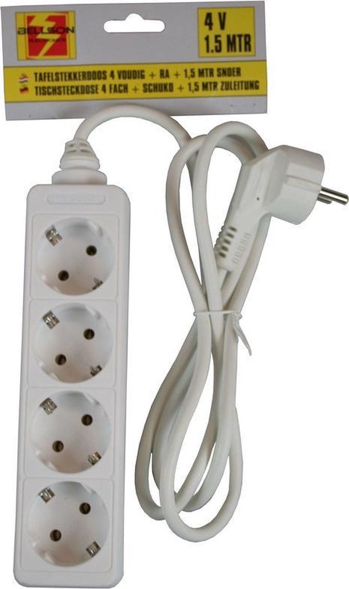 Ben Tools 3x Stekkerdoos 4-voudig wit - 1,5 meter - Met randaarde - Wandcontacten
