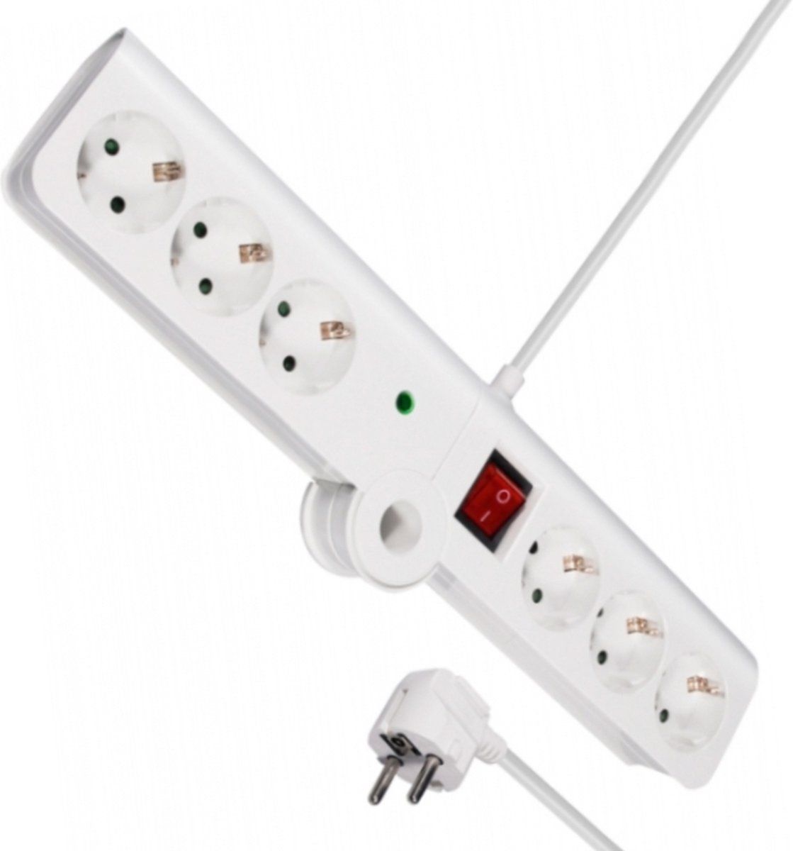 MaxTrack Stekkerdoos met 6 contacten, overspanningsbeveiliging en inklapbaar design / wit - 1,5 meter