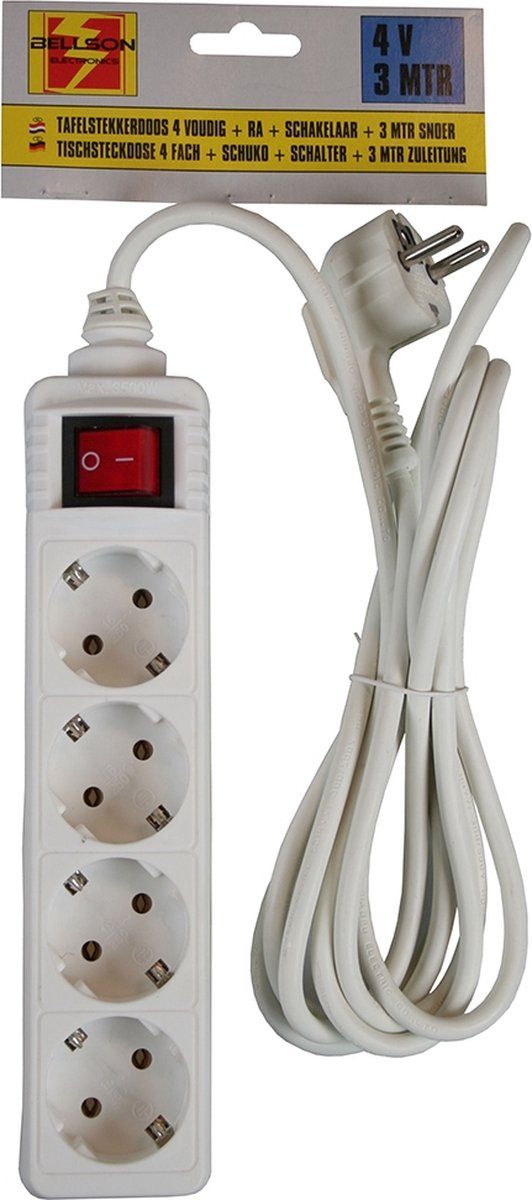 Benson Bellson Verlengsnoer Randaarde en Schakelaar 4-voudig Wit - 3 meter