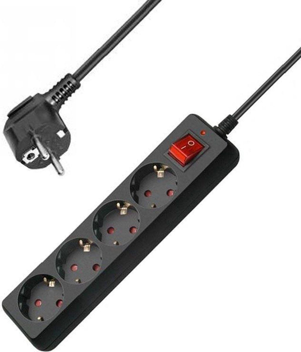 Allteq Stekkerdoos met schakelaar - 4-voudig - 5 meter - Zwart - Wandcontacten