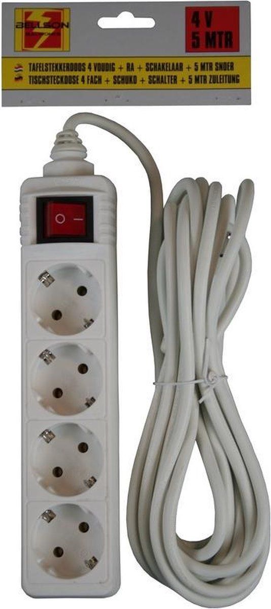 Ben Tools 2x Stekkerdoos 4-voudig wit - 5 meter - Met randaarde en schakelaar