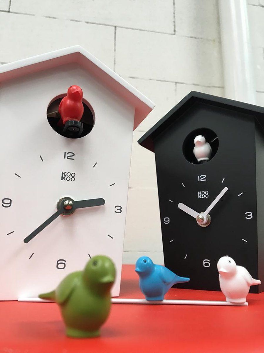 KooKoo Mini Birdhouse Zwart - Koekoek of Vogelgeluiden Klok - 2023 - Wandklokken