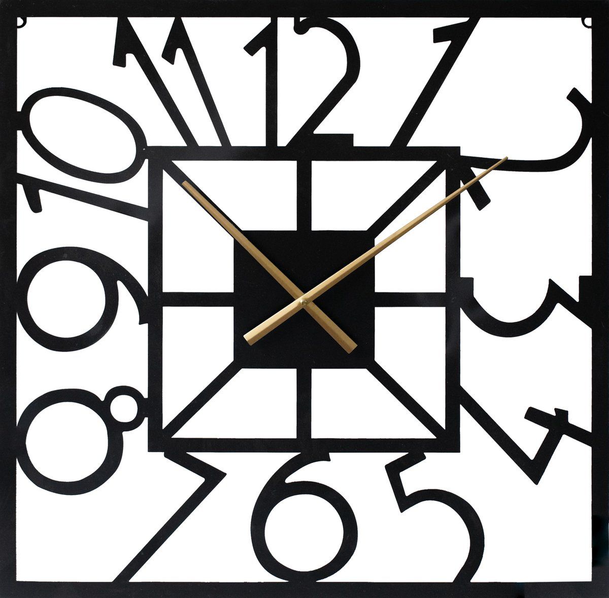 LW collection Wandklok zwart met gouden wijzers 60cm - Grote moderne wandklok Senna vierkant - Industriële klok - wandklok industrieel