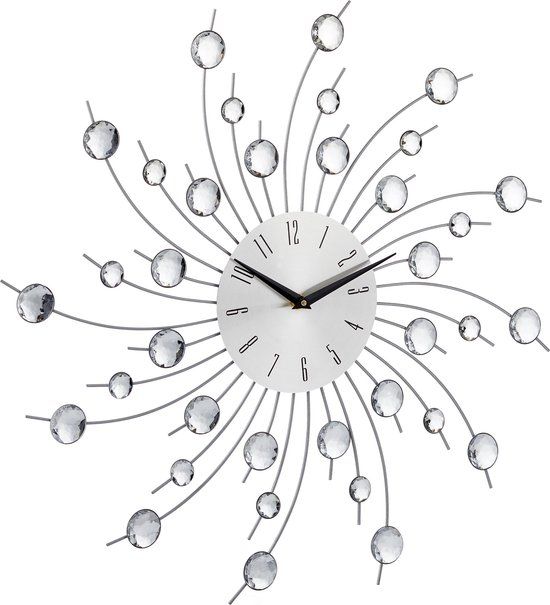Relaxdays Wandklok XL Glitter - Keukenklok Groot - Analoge Klok - Zilver - 50 cm