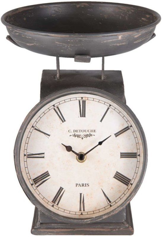 Clayre & Eef Klok in vorm van keukenweegschaal zwart ijzer - 8717459589711