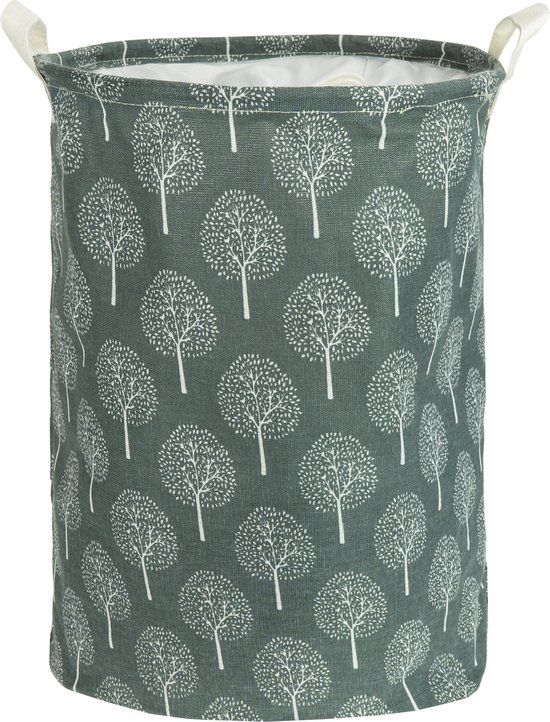 QUVIO Opvouwbare Wasmand - 43L - Grijs/Wit - Boom Patroon - Wasmanden