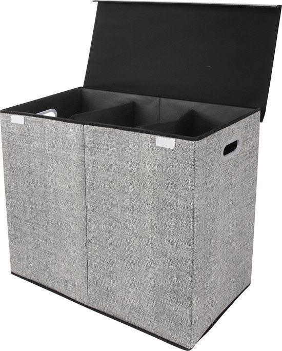 Zonovi Wasmand - 3 Vakken Met Deksel - Opvouwbaar - Grijs - 110 Liter