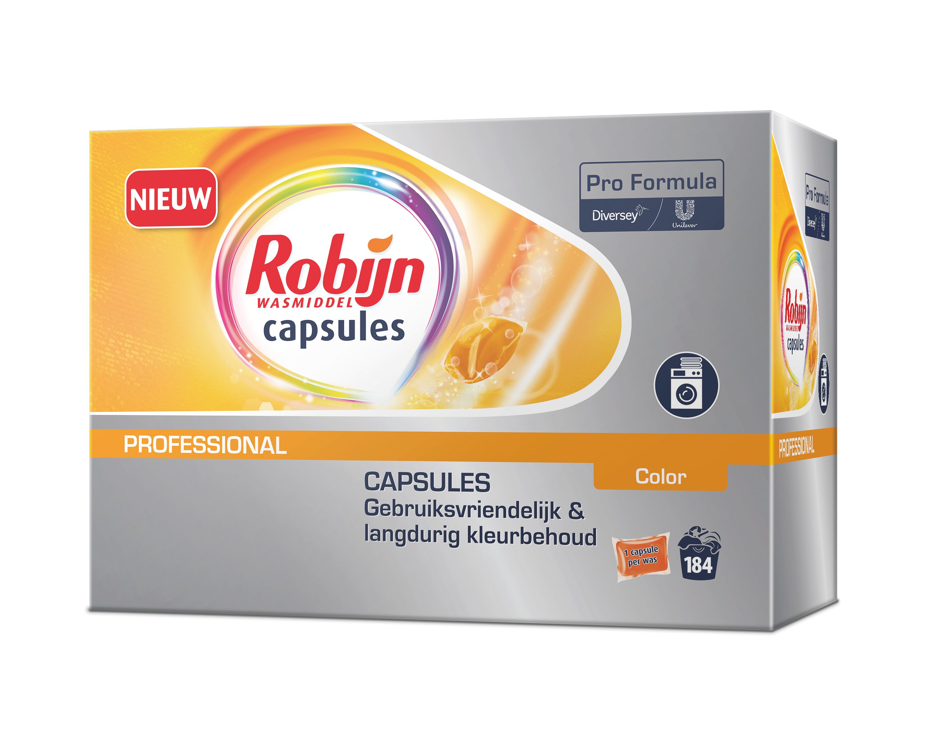 Robijn Pro Formula wasmiddel capsules bieden het beste van Robijn voor een professioneel schoon resultaat. Elke capsule bevat niet alleen geavanceerde waskracht, maar ook kleurbeschermers en een heerlijk parfum. Stop simpelweg een capsule bij de was voor een perfect afgemeten hoeveelheid geconcentreerd wasmiddel. Speciaal voor de gekleurde en bonte was.