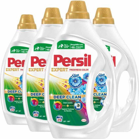 Persil nieuwe Expert Freshness formule biedt echte diepe reiniging van je wasgoed en hygiënische frisheid voor je wasmachine en nu met boost Freshness by Silan voor een verbeterde frisse geur van schoon wasgoed en verbeterde duurzaamheid van de fles, die 50% gerecycled plastic bevat.